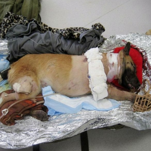 In the middle of a quiet military base, surrounded by sand and concrete, a dog once lay in a hospital bed fighting for her life. Her name…