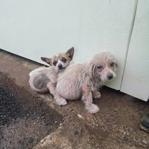 Shivering Beneath the Rain, Two Small Lives Clung to the Only Safety They Knew