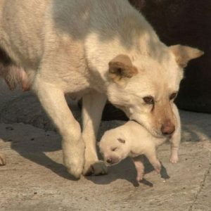 The birth happened quietly. No one celebrated it. No one was there to witness it. On the side of a dusty road, a mother dog went into…