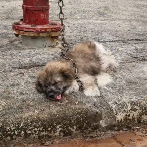 Some moments look like the end. Still.Silent.Unmoving. On an ordinary roadside, where people passed without stopping, a small dog lay chained tightly to a fire hydrant. His…