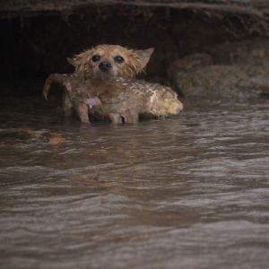 As the Water Rose, She Went Back Again and Again — Refusing to Leave Her Puppies Behind