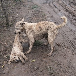 It began quietly. On damp ground, under soft light, a white mother dog stood beside her puppy. She nudged him gently. Once.Then again. A quiet encouragement— to…