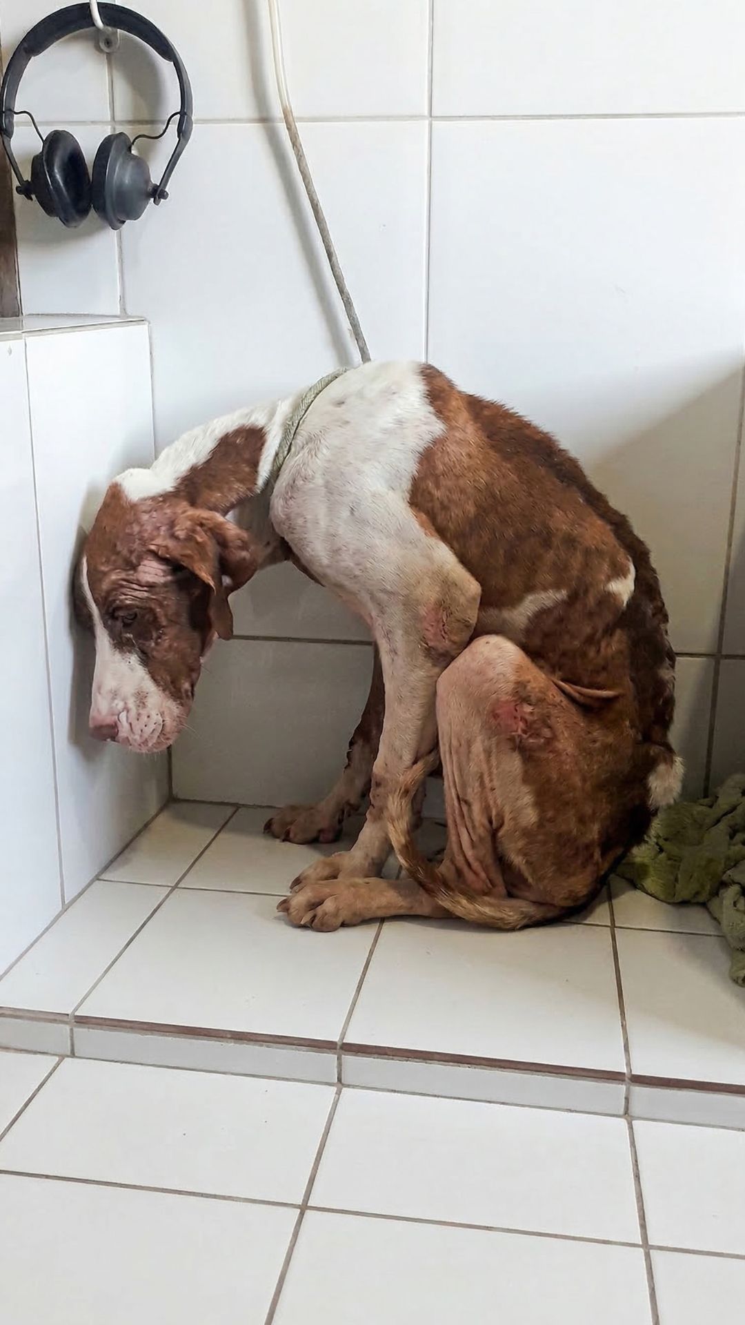 Weighing only 23 kilograms, she was nothing more than skin and bones—far from the strong, majestic dog she was meant to be.