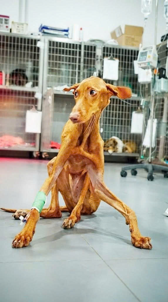 Her body was skeletal, every rib sharply visible beneath her dull, lifeless fur. Her legs trembled as she tried to stand, barely able to keep her balance. Hunger had drained her strength, but something far more serious was happening beneath the surface. Pippa was suffering from degenerative brain damage, a condition that made even the simplest movement a struggle.