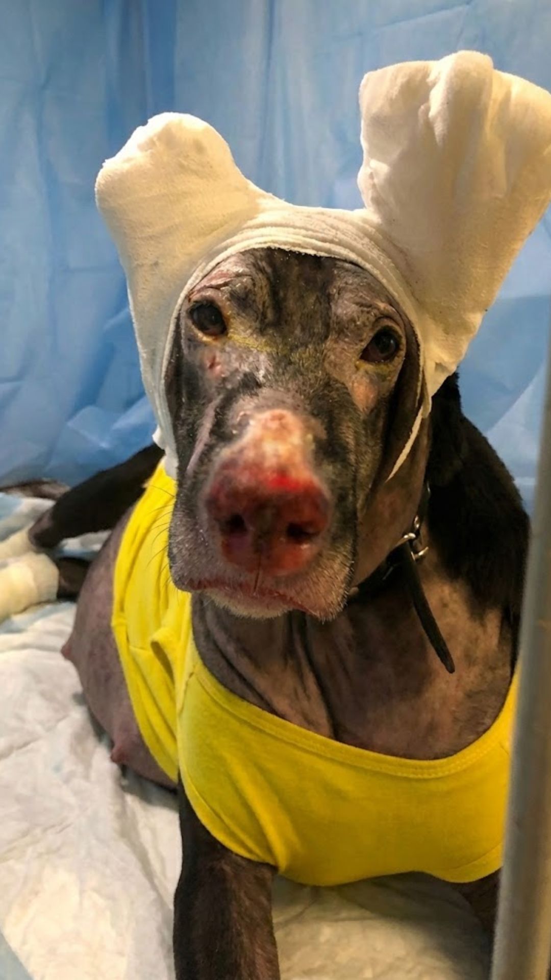 At the clinic, the veterinary team worked carefully to stabilize her condition.