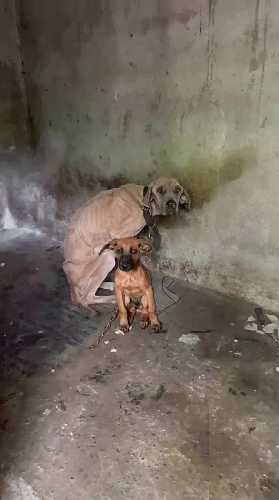 Beneath layers of dust and silence lay a mother dog and her tiny puppy. Both were tethered. Both were starving. And both had been waiting for help that came far too late.