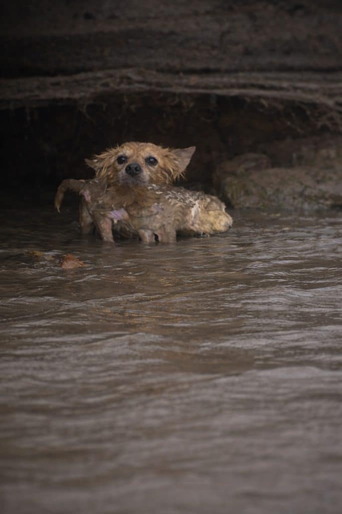 As the Water Rose, She Went Back Again and Again — Refusing to Leave Her Puppies Behind