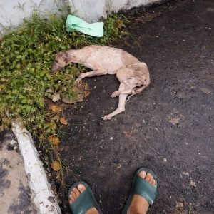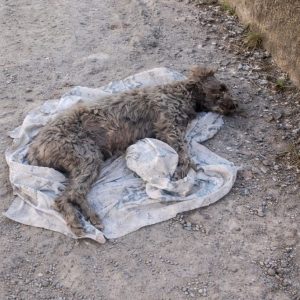 People almost walked past him. At the edge of a quiet roadside, on a worn, faded piece of cloth, a small dog lay completely still. His body…