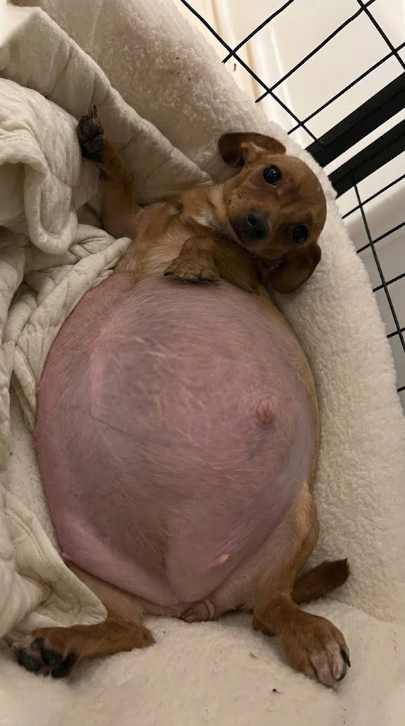 She was carrying five fully developed puppies inside her tiny frame. The strain on her body was enormous. Her labor had stalled. Her strength was gone.