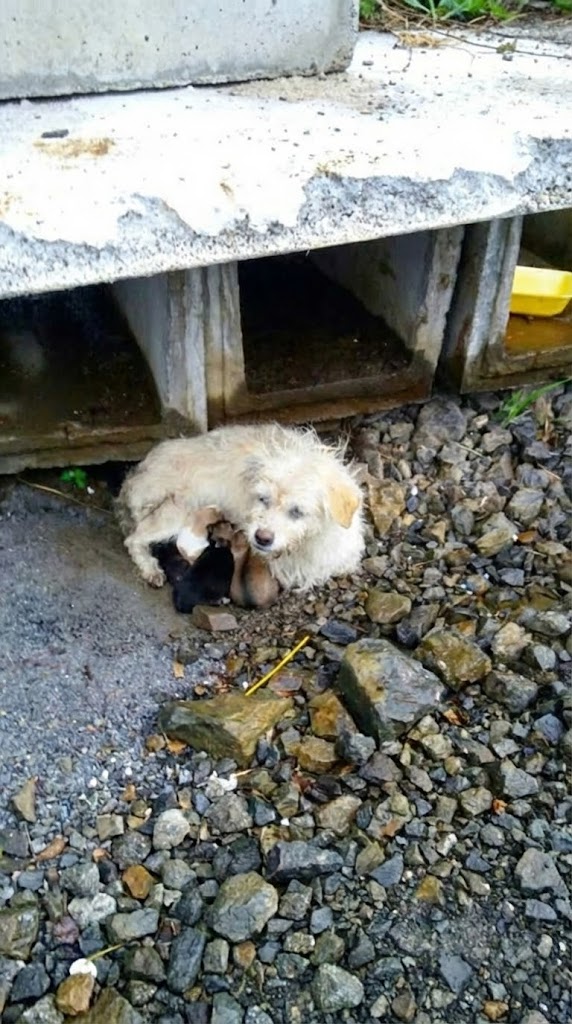 She didn’t fully understand what she was seeing—only that a dog and her puppies were in trouble. She stopped, took a photo, and sent a message to local rescuers, asking for help before it was too late.