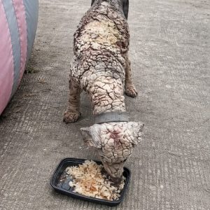 He wasn’t running. He wasn’t barking. He stood there—pressed tightly against a faded red wall,as if trying to become invisible. His body was painfully thin.Most of his…