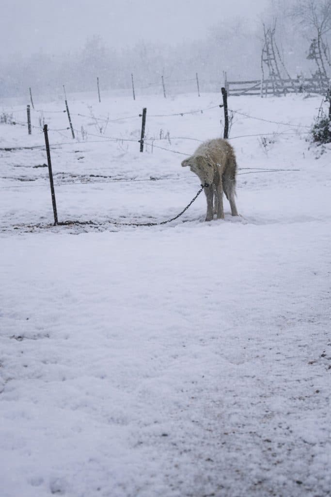 Out in an open field, surrounded by snow, a dog had been left behind.