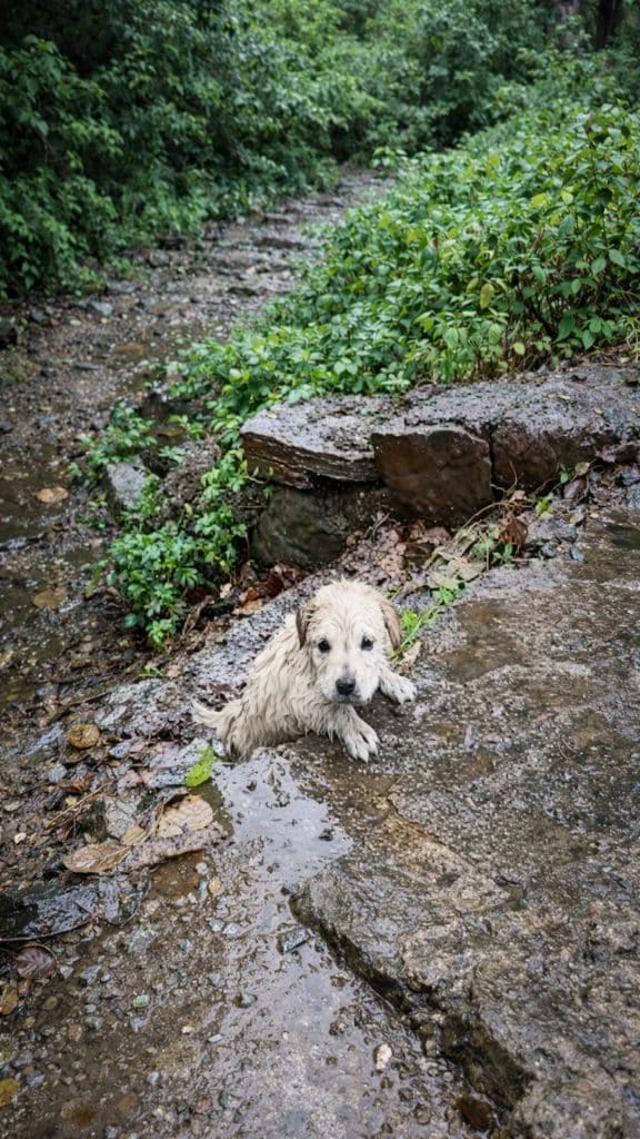 The puppy who once clung to survival in the rain