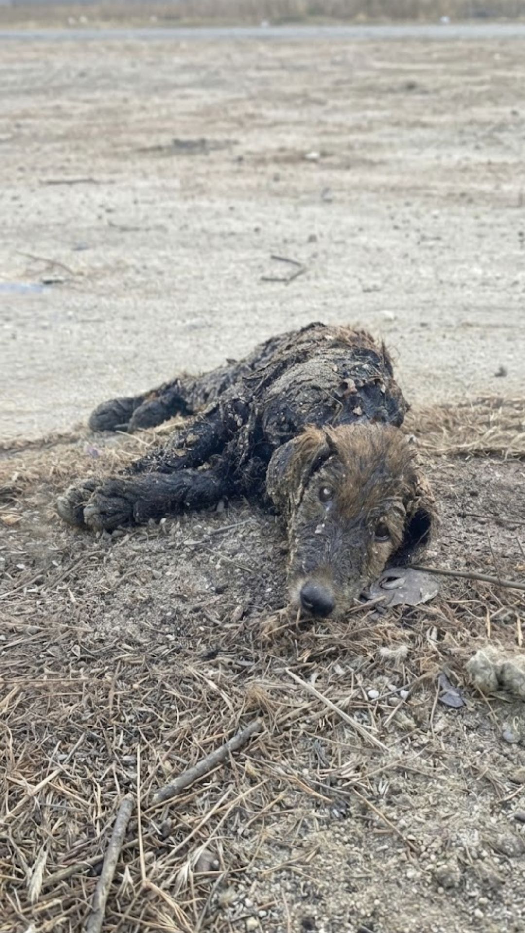On the streets of Azerbaijan, a small stray puppy became the target of cruelty that is difficult to put into words. A group of teenagers poured motor oil and gasoline over her fragile body.