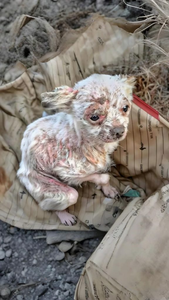 In the early moments, a small white dog moves slowly through piles of discarded trash, searching for food. His body is thin and weak, his steps careful and uncertain. Every movement looks like an effort. The noise of the street surrounds him, yet he remains quiet, focused only on finding enough to survive another day.