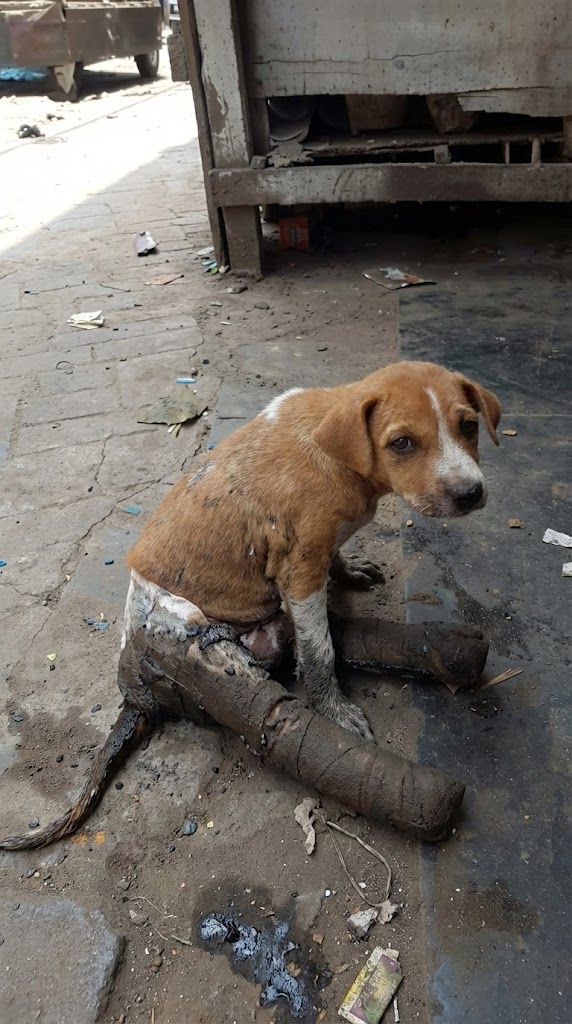 In the relentless chaos of Kolkata, India—a city where noise never sleeps and survival is a daily battle—a small puppy was quietly losing hers. Her name was Scooter, and she had become invisible among millions. While life rushed past her, Scooter could only drag herself across the dirt. Her hind legs were paralyzed, her body ravaged by infection, and her future narrowed to pain and exhaustion.