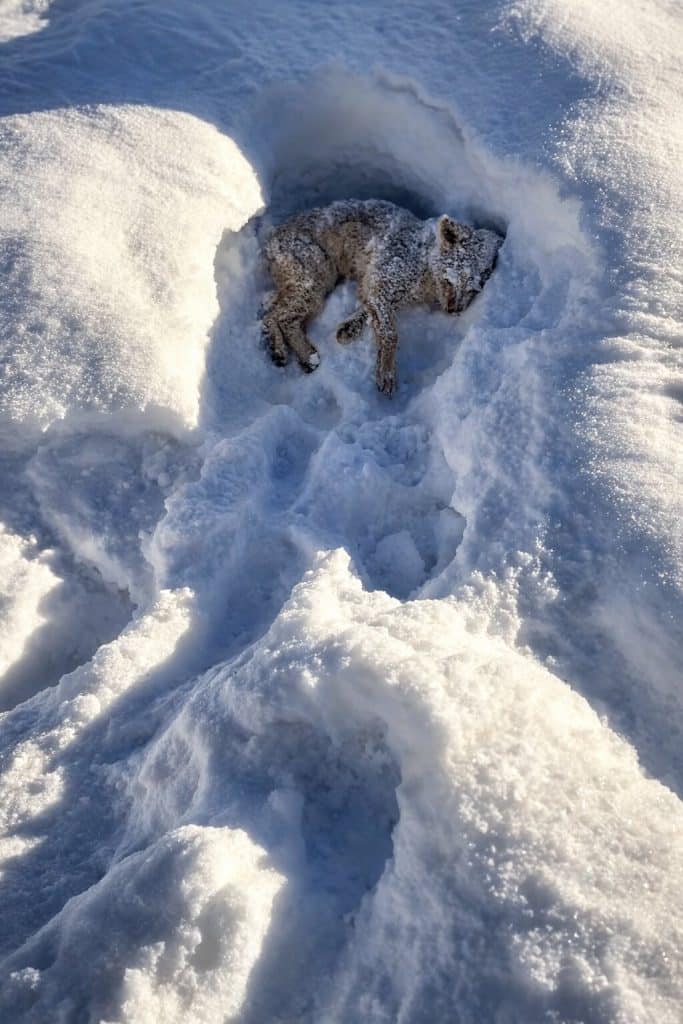 His small body was almost completely buried, motionless, stiff from the cold. The freezing air had taken nearly all his strength.