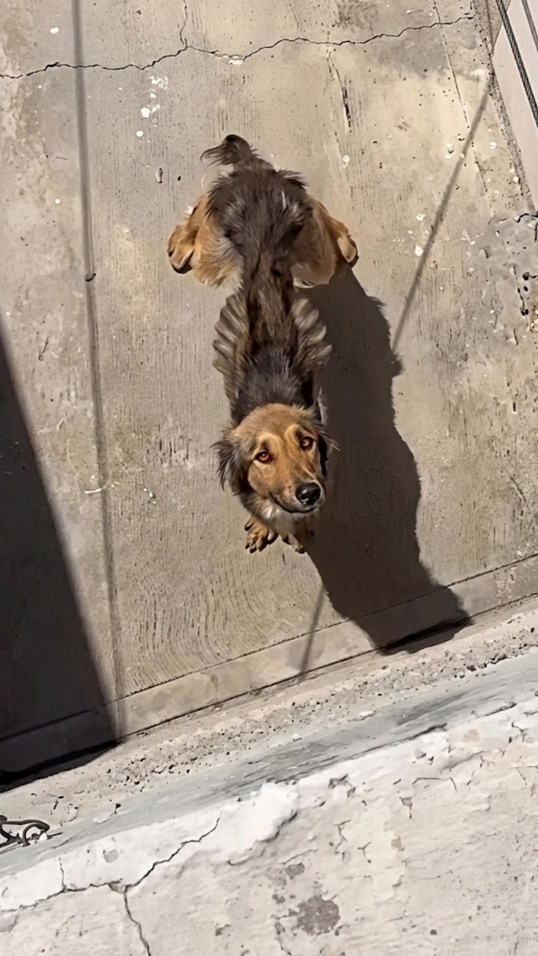 His body was painfully thin — ribs pressing sharply against fragile skin. His fur was dull, patchy, clinging to him in uneven clumps. His eyes… sunken, tired, distant.