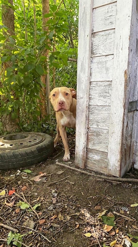 The dog hid behind the garage, peeking out with eyes that had learned caution the hard way. His body was tense. His tail stayed low.