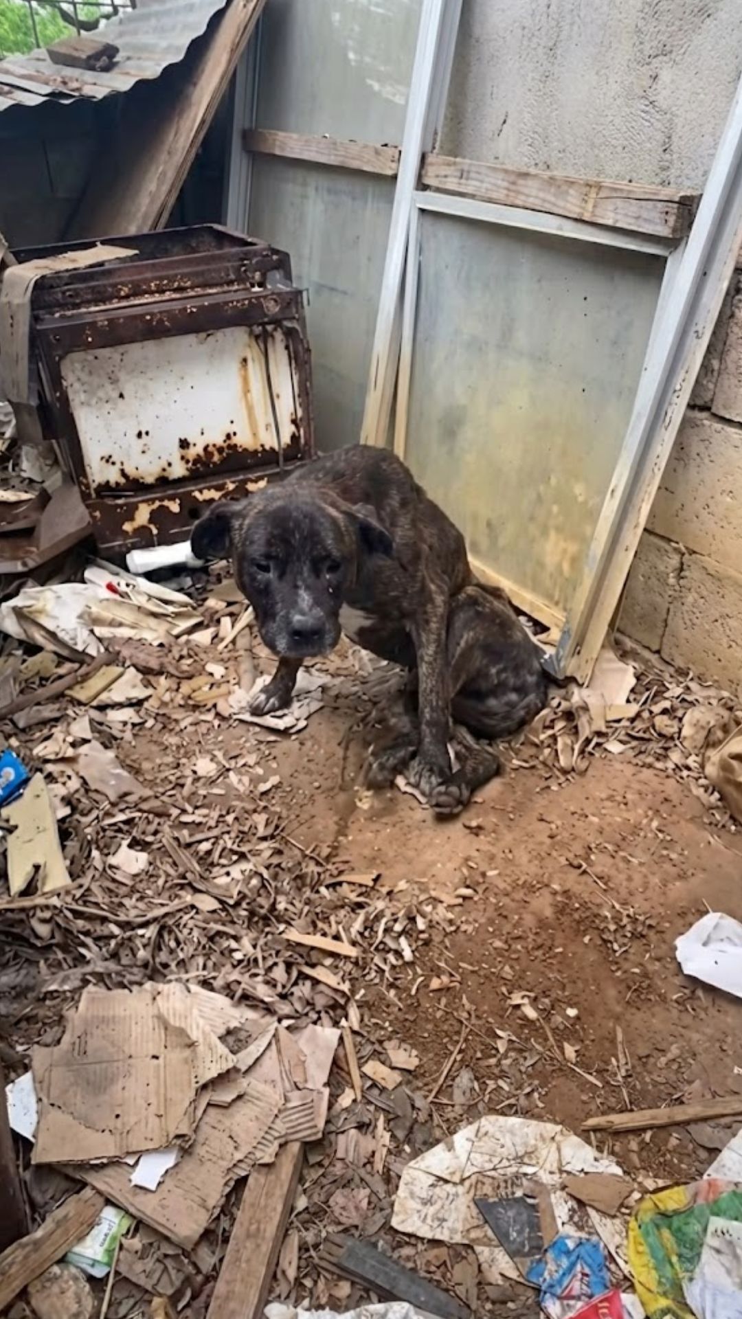He was discovered in a garbage dump — the kind of place where broken things are thrown away and forgotten. Hidden among piles of scrap and trash was a small dog trying desperately to survive.