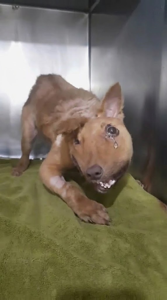 At the clinic, the veterinary team moved quickly but gently. Bonbon was exhausted, frightened, and incredibly fragile.