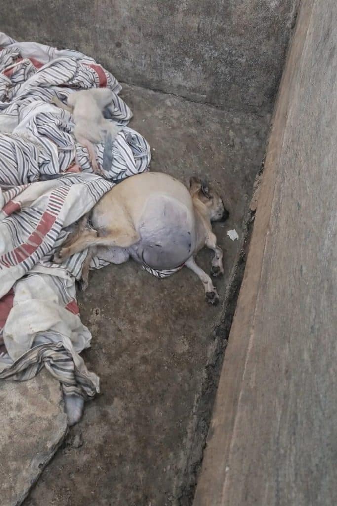In the corner of a temple, where people came seeking peace, a small dog lay alone.