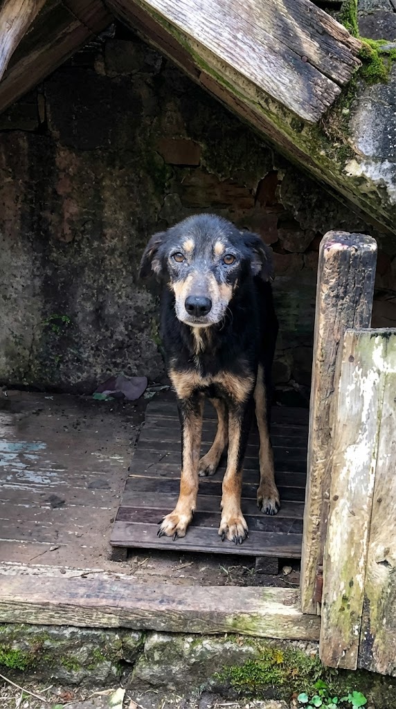 A neighbor contacted us about a dog who had been hidden for years. When we arrived, we were led to a narrow, damp space beneath a staircase. There was no airflow. No sunlight. Only darkness, mold, and the heavy smell of neglect.