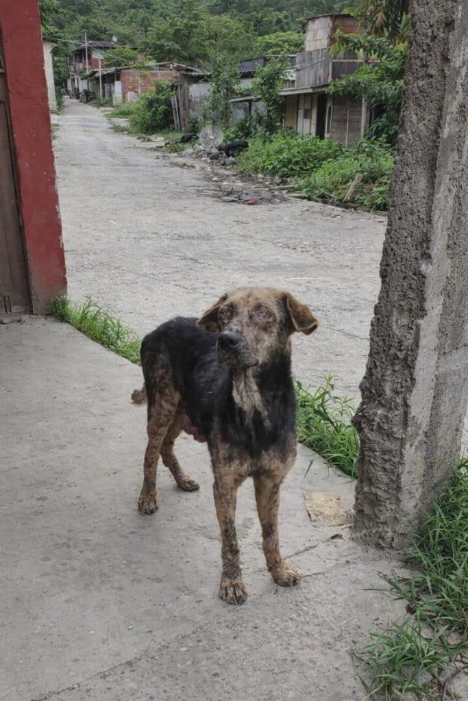 Most of his fur was gone, leaving irritated, fragile skin exposed.
