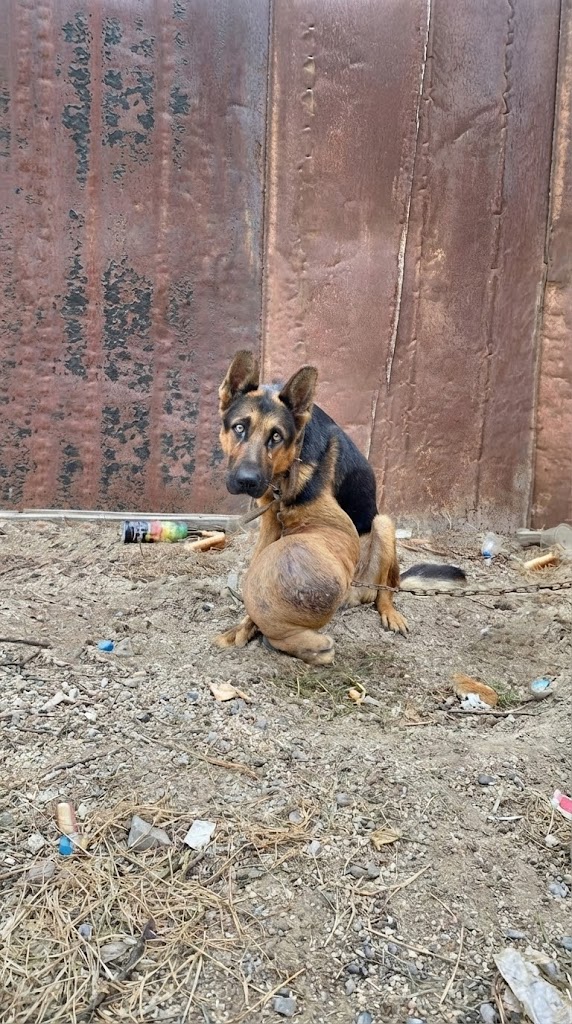 Behind an aging house, in a small neglected yard, he lived tied to a rusted post. The chain around his neck allowed him only a few steps in any direction — just enough space to stand, turn, and lie back down on the dirt beneath him.
