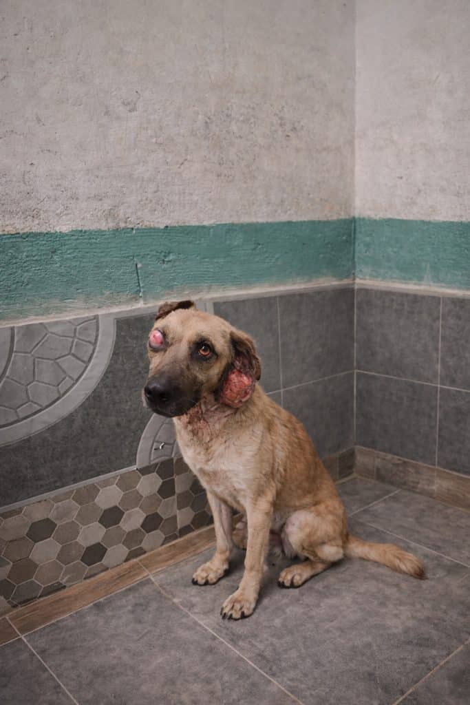 In a world where stray dogs already face daily challenges, this one carried something more.