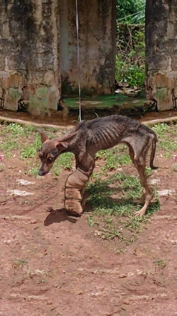 Hero’s front leg was badly swollen—an old injury that had never been treated. Infection had set in long ago, eating away at tissue and strength. Walking became difficult. Some days, he lifted the leg entirely, hopping awkwardly as he searched for scraps of food or a sip of water.
