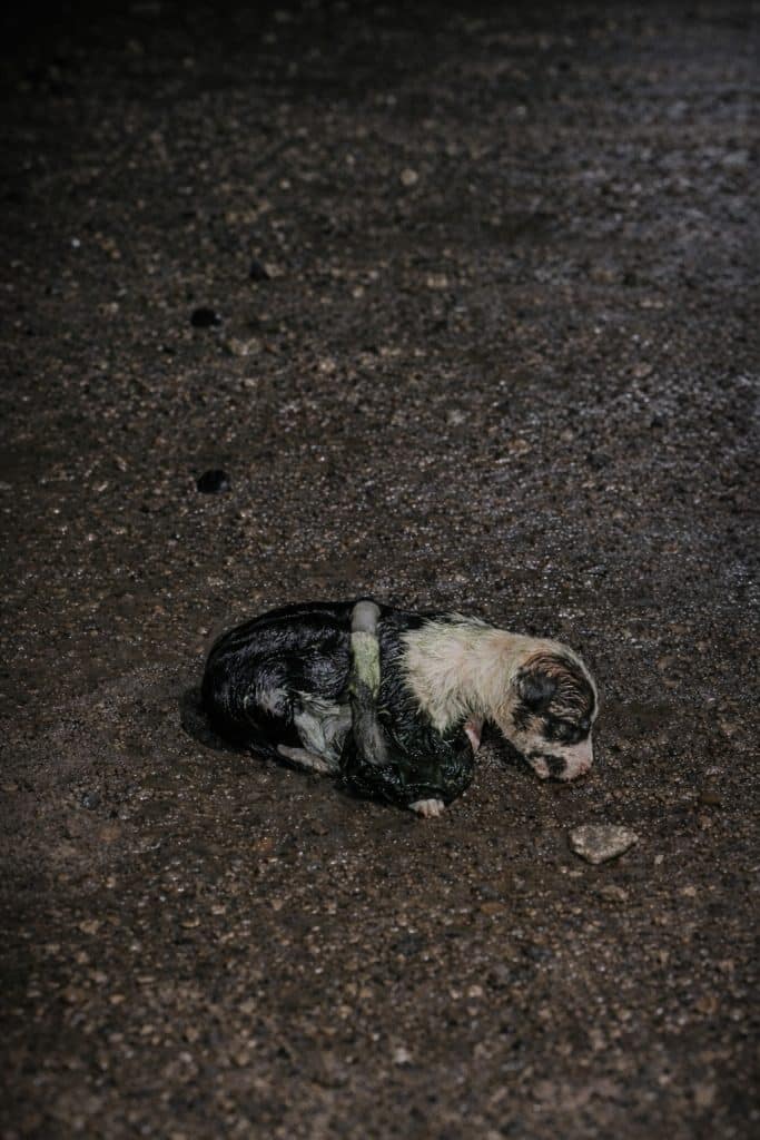 A newborn puppy—so small, so fragile—barely showed any signs of movement. His umbilical cord and placenta were still attached. There was no mother nearby. No warmth. No protection.