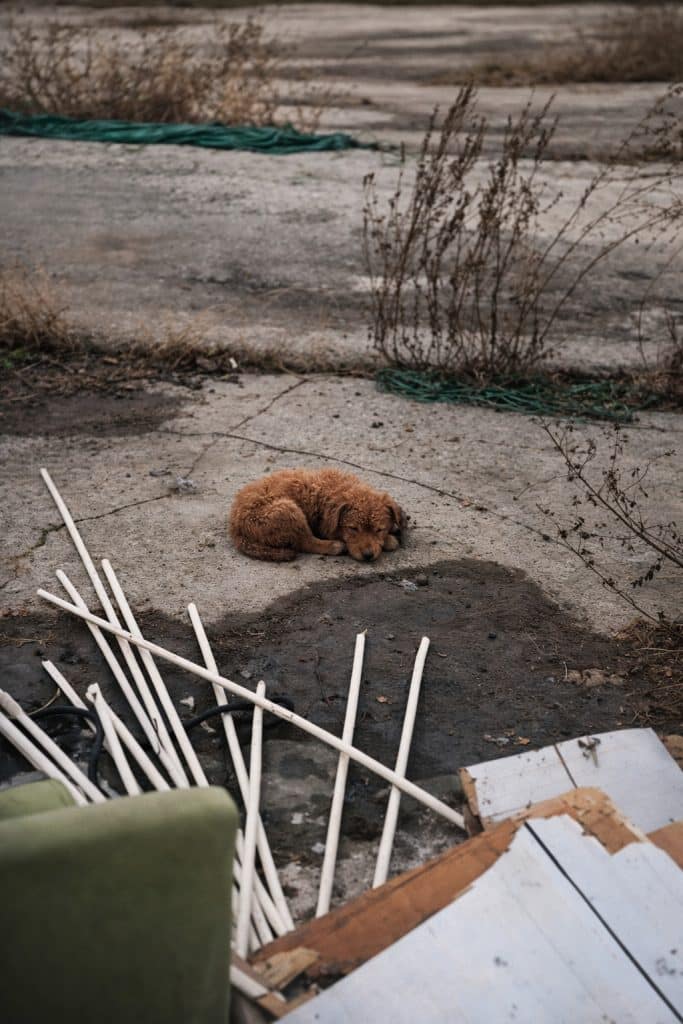 The dog who once lay still among rubble…