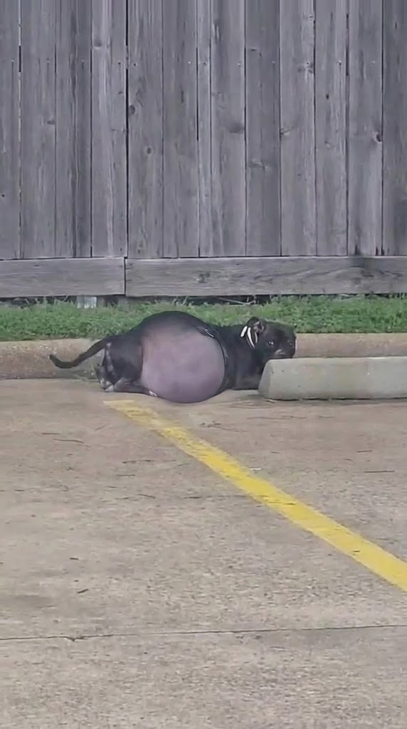 At the edge of the road, barely moving, lay a black dog whose body looked weighed down by more than exhaustion. She tried to lift her head, but failed. Her breathing was labored. Every tremor of her body spoke of pain she had endured for far too long.