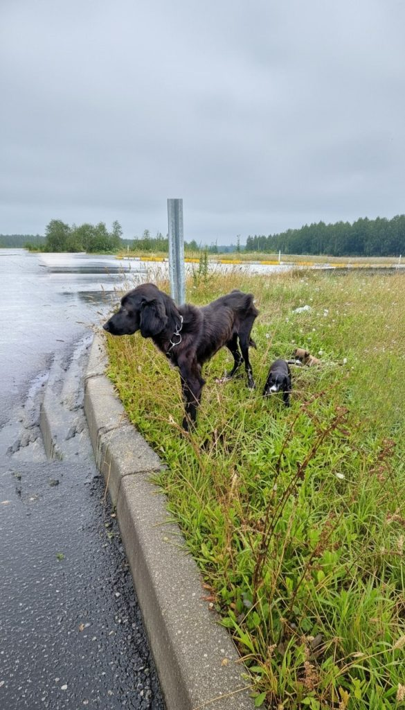 In that moment, a dog who had been abandoned, tied in the rain, and left to die chose to become a mother again.