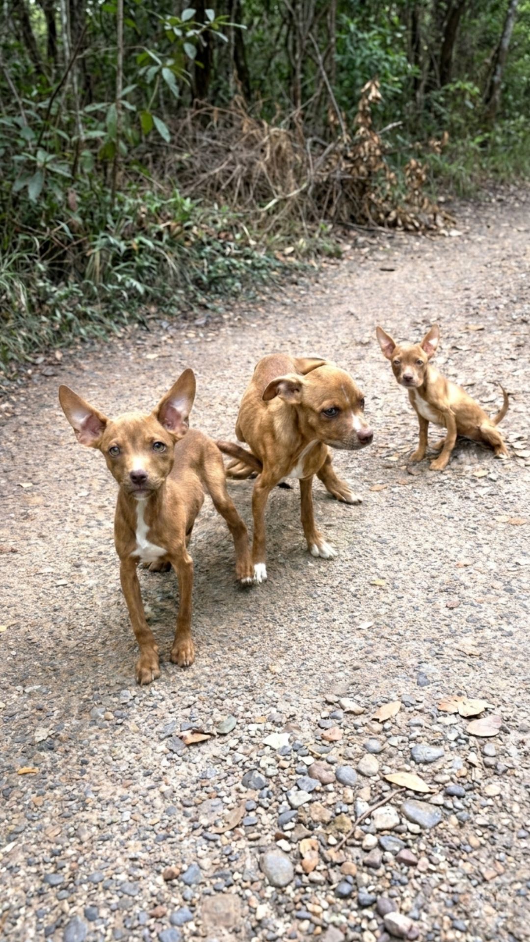 Far from the city, on a quiet dirt road surrounded by forest, three tiny puppies were left behind.