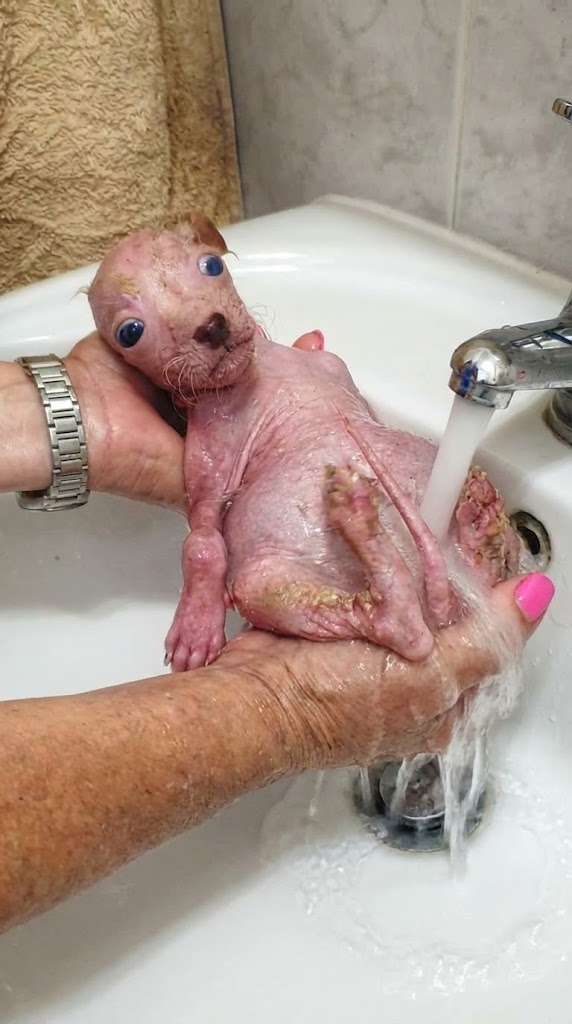 Moka received round-the-clock care. Medicated baths soothed his inflamed skin. Sunlight became part of his treatment, warming a body that had spent too long in darkness. His meals were carefully measured, his recovery slow and fragile.