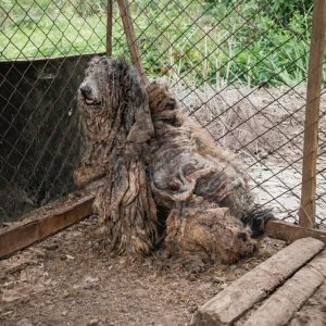When rescuers first saw him, it was difficult to understand what he had once been. His fur had grown into thick, hardened layers, clinging tightly to his…