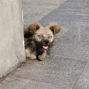 A small dog whose face has been visibly altered by something severe. One eye is swollen far beyond normal. Pushed outward by a red, inflamed mass. The…
