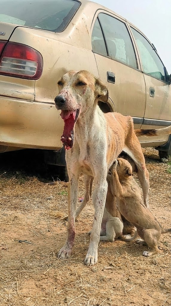 Behind an old wall, she had made a small shelter for her puppies. It was nothing more than bare ground and a bit of cover from the weather — but it was home.