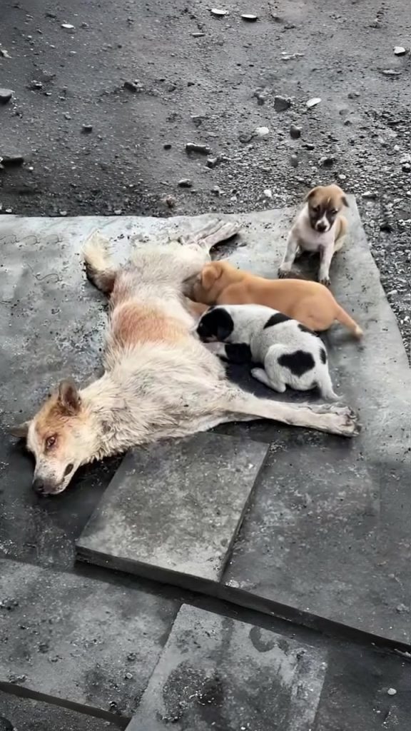 They trembled as they tried to nurse, their small bodies clinging desperately to a mother who could barely lift her head. Their cries were soft—almost lost beneath the sound of machinery—but they carried an unmistakable will to live.
