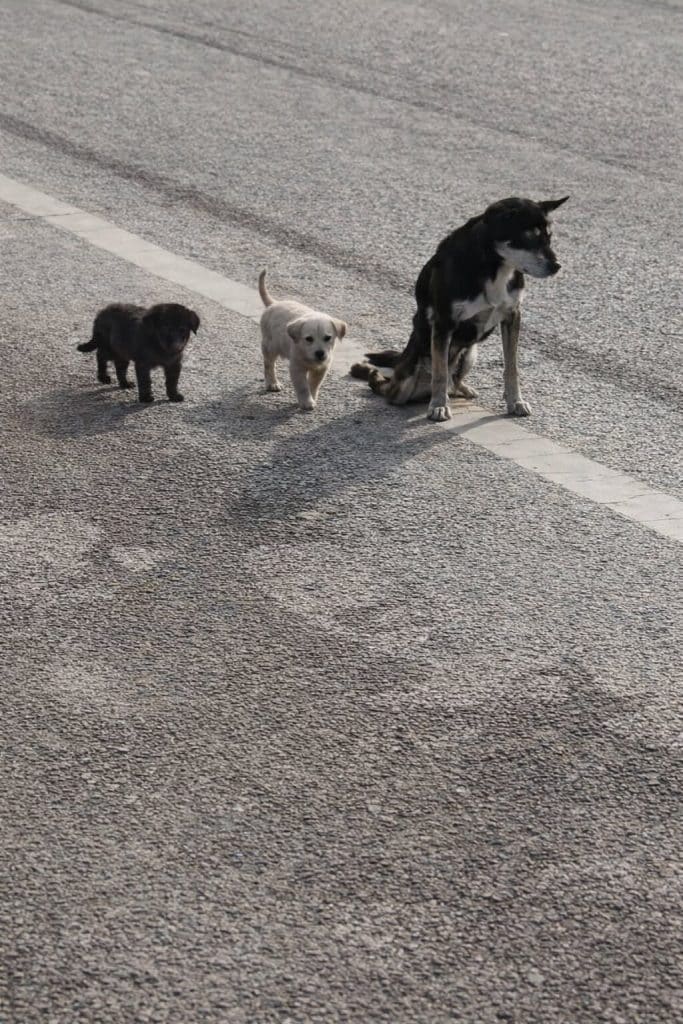 And her two tiny puppies.