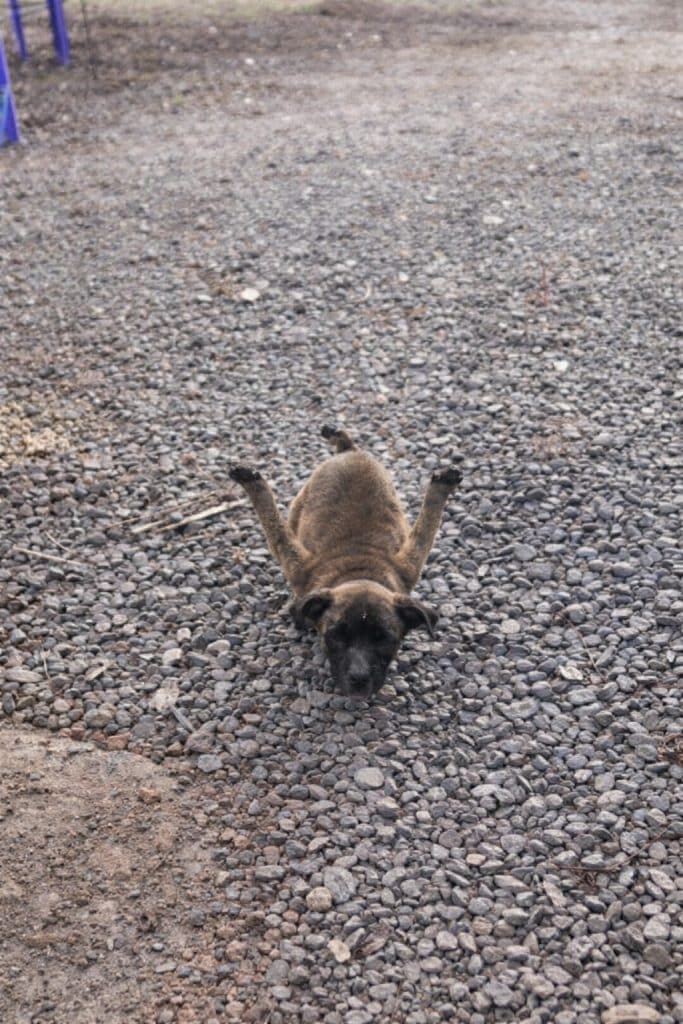 Her front legs were twisted and unable to support her weight. Instead of stepping forward, they stretched outward, forcing her to rely on her belly and hind legs just to move.