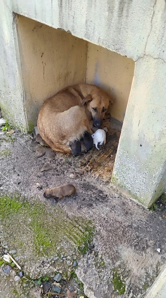 When a rescuer finally discovered them, the scene was impossible to forget. This was not just a stray dog—it was a mother holding her family together through sheer determination.