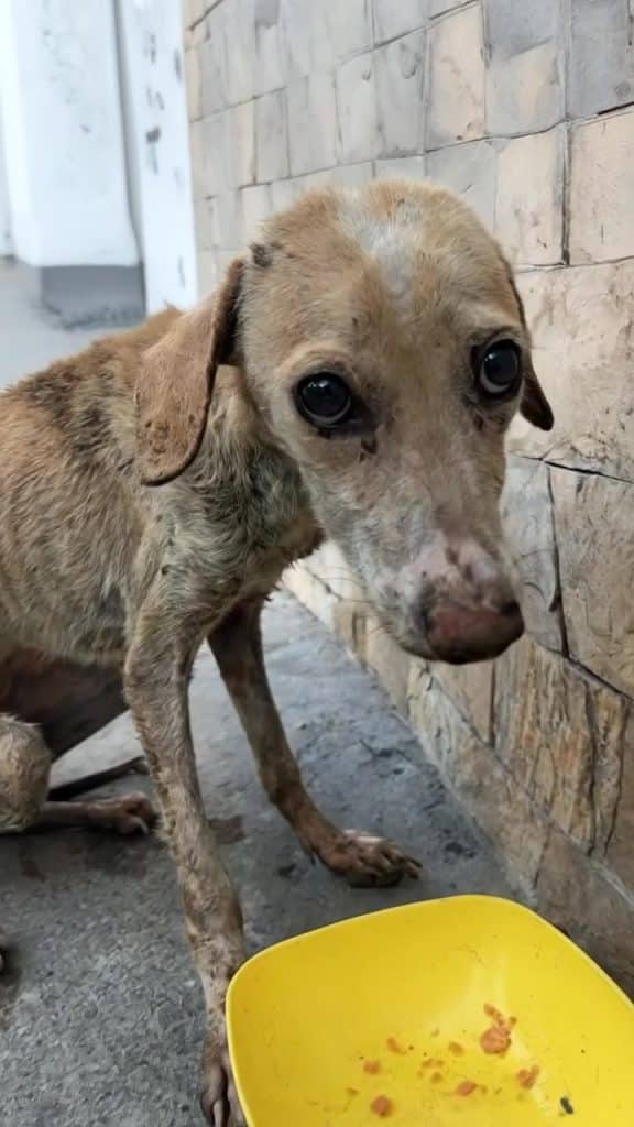 A dog discovering the world again.