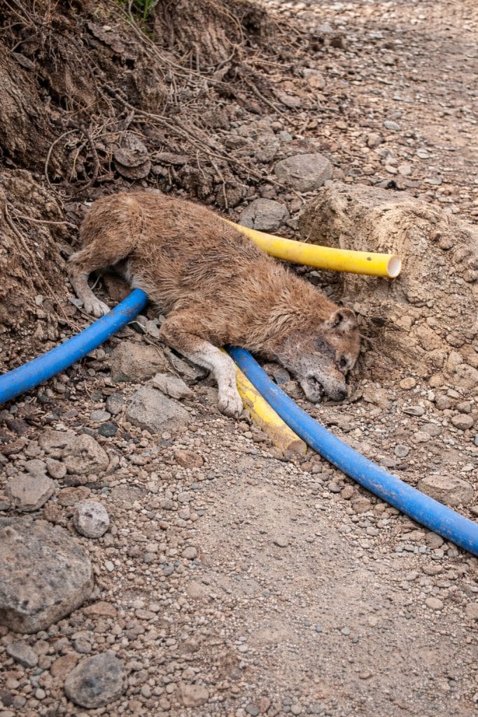 Her body lay awkwardly on its side. Her fur was matted. Her limbs didn’t move. There was no struggle, no attempt to stand, no sign that she had enough strength left to run.