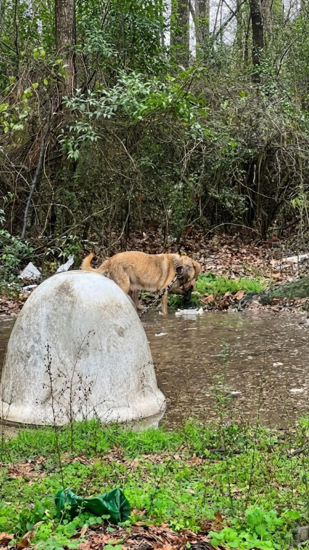“The second I saw that sweet mama dog on that heavy chain, trying with all her might to get her babies out of that water, I knew we had to help,” Stevie said.
