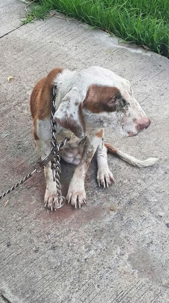 She saw a dog who was far too thin, barely moving, chained and forgotten. Instead of walking away, she took a photo and sent a message to local rescuers, asking for help.