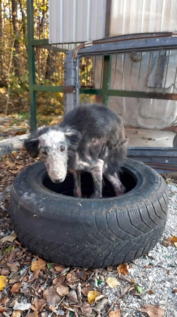 Advanced mange had turned her skin into a thick, cracked shell of suffering. Her fur was almost gone. Her movements were slow and heavy, weighed down by exhaustion and despair.