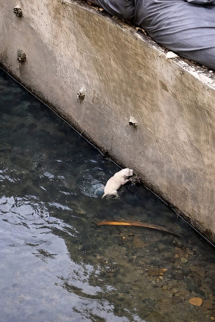 At the bottom of the ditch, in murky, dirty water, something was trying to stay afloat.